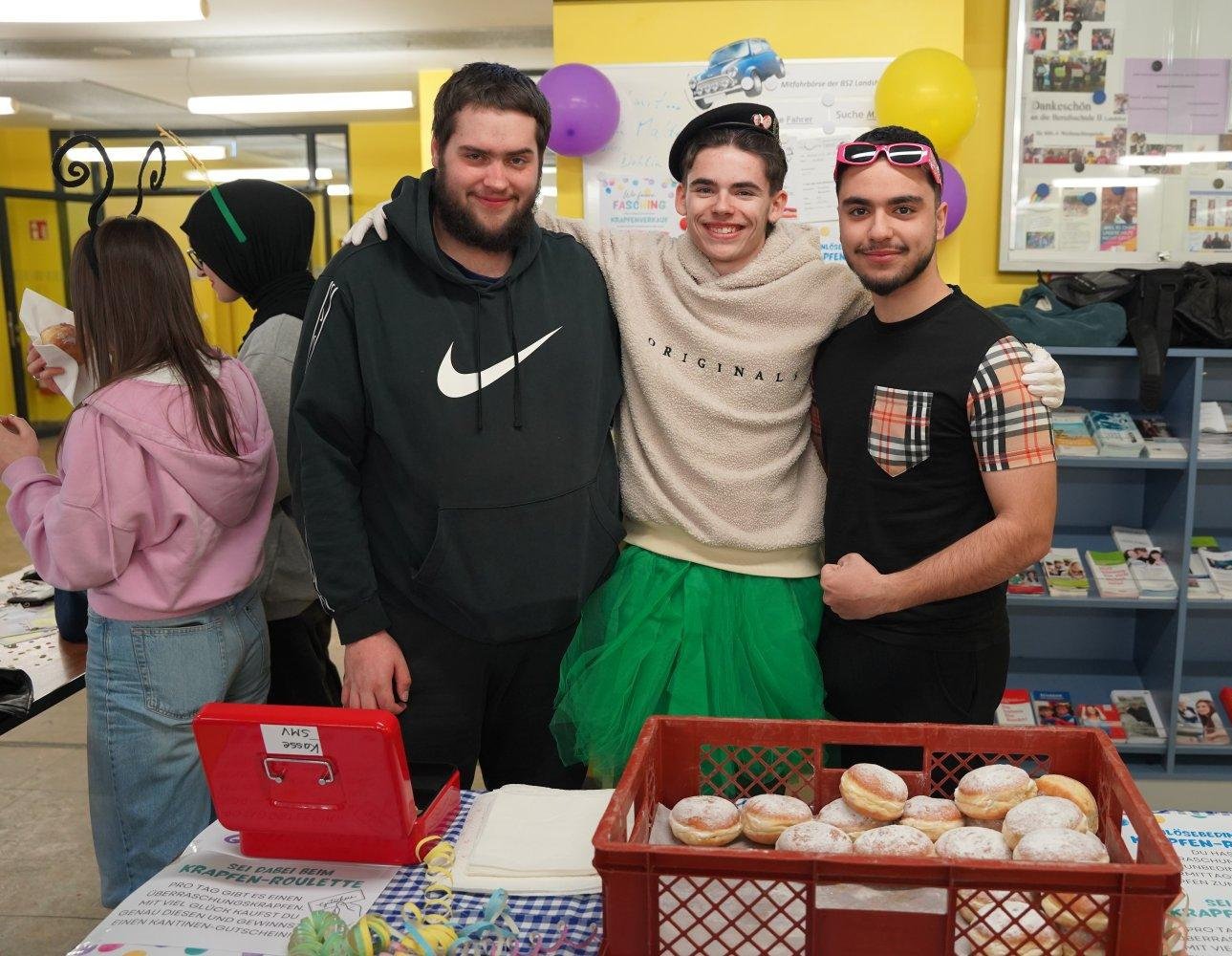In der letzten Woche vor den Faschingsferien hieß es wieder "Helau" und die SMV veranstaltete erneut ein Krapfen-Roulette. Täglich wurden circa 50 Krapfen verkauft, wovon einer eine andere Füllung hatte und mit einem Kantinengutschein belohnt wurde – leider wurde dieser nicht an allen Tagen bemerkt. Vielleicht muss die SMV nächstes Jahr mit visuellen Hilfen zum Erkennen einer Aprikosen- oder Vanillefüllung nachhelfen. 😋