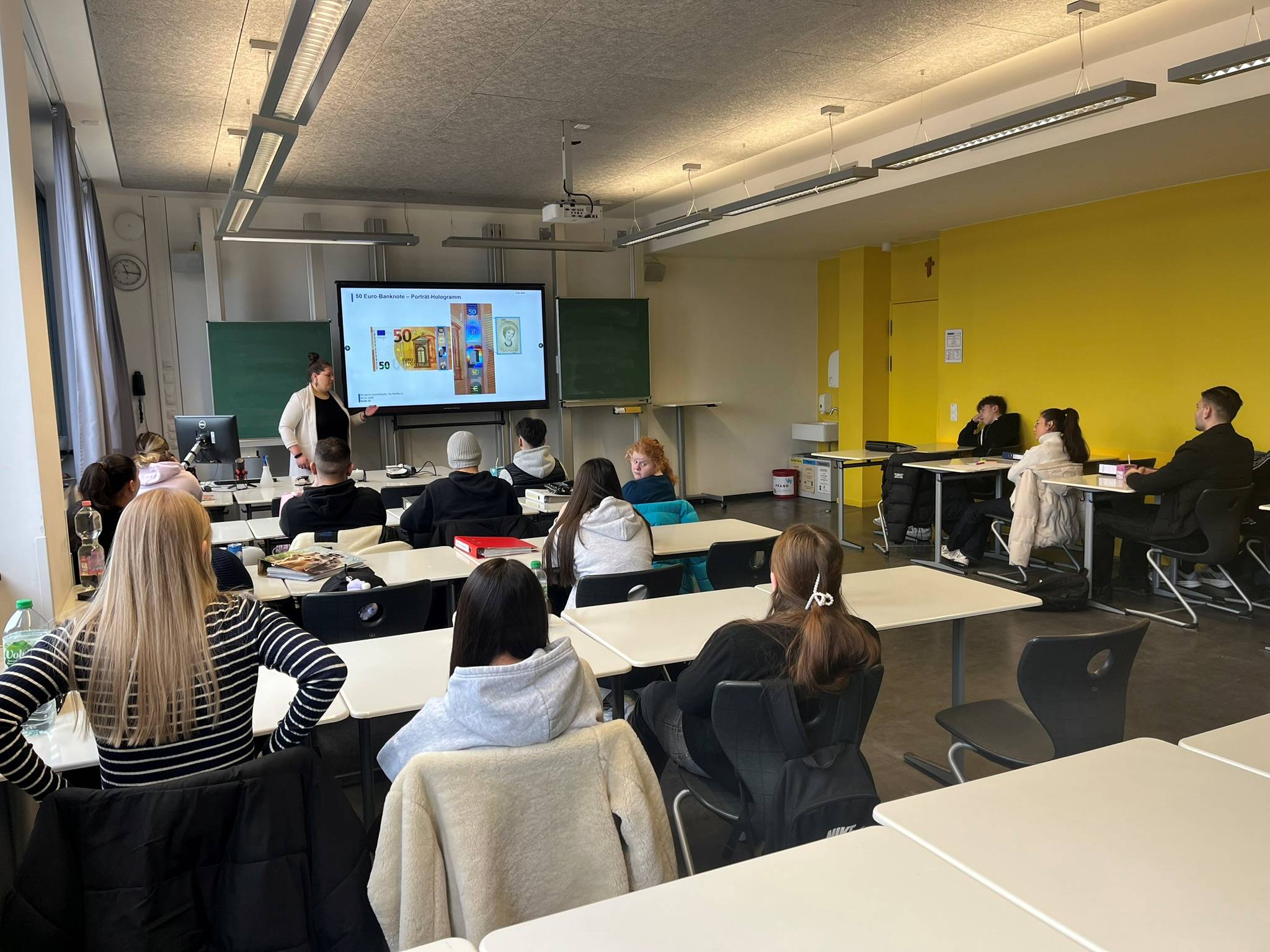 Im Rahmen des KSK-Unterrichts der 10. Jahrgangsstufe hatte die Fachgruppe Wirtschaft IV Einzelhandel/Verkauf vom 03. bis 06. Februar 2026 das Vergnügen, Frau Mühlfenzl von der Deutschen Bundesbank, Filiale Regensburg, als Referentin zu begrüßen. Ziel der Veranstaltung war es, den Auszubildenden fundierte Kenntnisse zum Thema Falschgeld zu vermitteln.