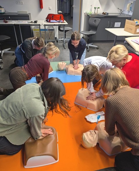 Im Rahmen einer schulinternen Lehrerfortbildung (SchiLf) erhielten die Lehrkräfte der Gesundheitsabteilung wertvolle Einblicke in die Nutzung digitaler Medien zur Gestaltung interaktiver Unterrichtsinhalte. Unter der fachkundigen Anleitung von Karin Schultze lernten die Teilnehmenden unter anderem, wie sie mit dem Spirometer einen Lungenfunktionstest oder mit dem neuesten EKG ein Elektrokardiogramm schreiben können. Vielen Dank an dieser Stelle an unseren „Patienten“ Sebastian Leder, der alle Untersuchungen mit Bravour gemeistert hat. Das Highlight der Fortbildung war am Ende ein Wettbewerb von 6 Lehrkräften, wer am besten eine digitalgesteuerte Puppe reanimierte. Die praxisorientierte Fortbildung stieß auf großes Interesse und bot zahlreiche Anregungen, wie digitale Medien den Unterricht abwechslungsreicher und motivierender gestalten können. Am Ende bedankten sich alle für diese kurzweilige und gelungene Fortbildung.