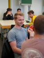 Ein zentraler Bestandteil des Tages war die gemeinsame Themenentwicklung. Mit kreativen Methoden wie beispielsweise Brainstorming mithilfe von Post-its erarbeiteten die acht Projektgruppen jeweils einen Themenpool. Im Anschluss stellte jede Gruppe ihr favorisiertes Thema in einem Pitch vor. In kurzen Fragerunden erhielten die Gruppen direktes Feedback, das ihnen bei der Schärfung und Konkretisierung ihrer Themen in den nächsten Wochen helfen wird.