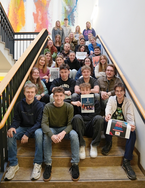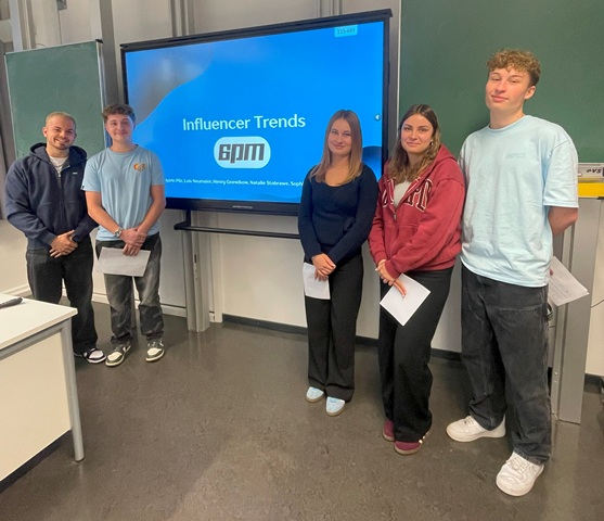 Die IN 12 c hat Podcasts zu verschiedenen Themen aufgenommen. Dabei haben die Schülerinnen und Schüler ihrer Kreativität freien Lauf gelassen. Schon bei der Themenfindung konnten die Gruppen, bestehend aus drei bis fünf Personen, ihre persönlichen Vorlieben einbringen. Die Bandbreite der Themen ist ebenso vielseitig wie deren Umsetzung. Sie hatten die Wahl zwischen dem Format „Storytelling“ oder „Interview“ und zeigten ihre technische Affinität sowie Redegewandtheit bei der Beantwortung von politischen Fragen und sexualisierter Diskriminierung im Beruf. Die Themen reichten darüber hinaus von der Reflexion des Kaffeepreises bis hin zu Marketingstrategien von Red Bull und dem Wiederaufbau Deutschlands nach dem Krieg im Vergleich zur heutigen Situation. Auch zu der Thematik „Ausgebildet und geblieben“, dem Einfluss von Influencer:innen am Beispiel von 6PM oder der kritischen Auseinandersetzung mit der WM-Vergabe nach Katar wird man fündig. Wer Lust hat, sich kompakt über eines dieser Themen zu informieren, kann einen Einblick in die selbstgedrehten und geschnittenen Podcasts erhaschen.